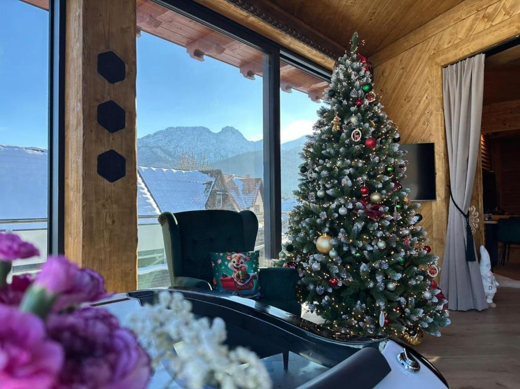 Wnętrza łączą naturalne materiały z nowoczesnym wyposażeniem. Balkony i tarasy otwierają się na Tatry, a jacuzzi na miejscu pozwala odpocząć po nartach lub trekkingu.